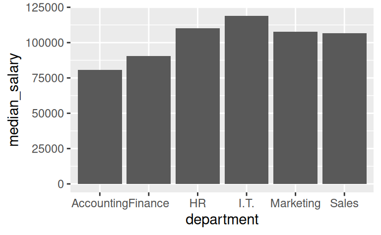 group_by(),summarise()andmedian()to get the median salary in theI.T.department.