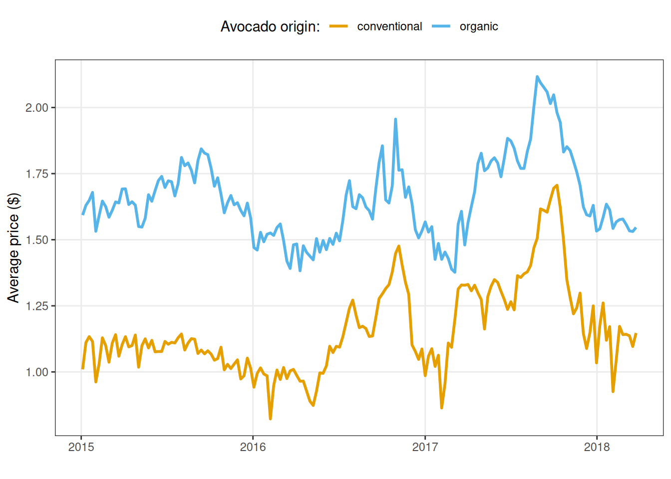 labs(x="", y= "Average price ($)", color="Avocado origin:")+